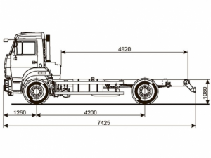 Шасси 6*4, длина рамы 5 970 мм, межосевое растояние мм, грузоподъемность 12 тонн